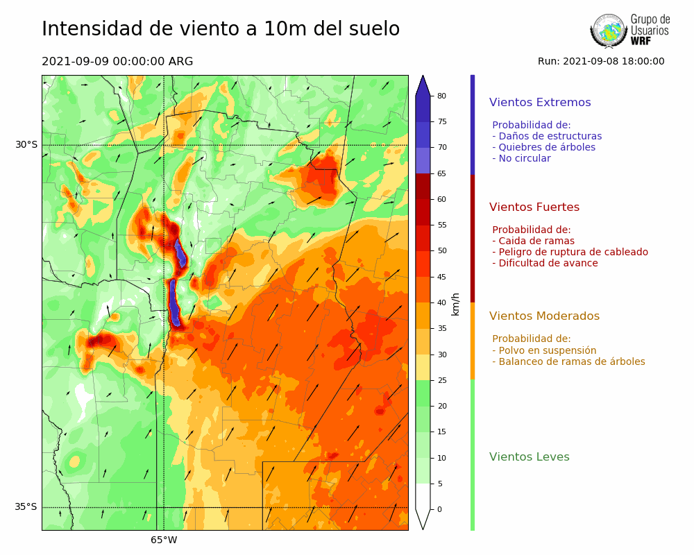 • Intensidad máxima: 16.73 km/h (09/09/2021 05hs.)