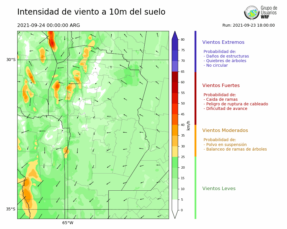 • Intensidad máxima: 20.31 km/h (24/09/2021 11hs.)