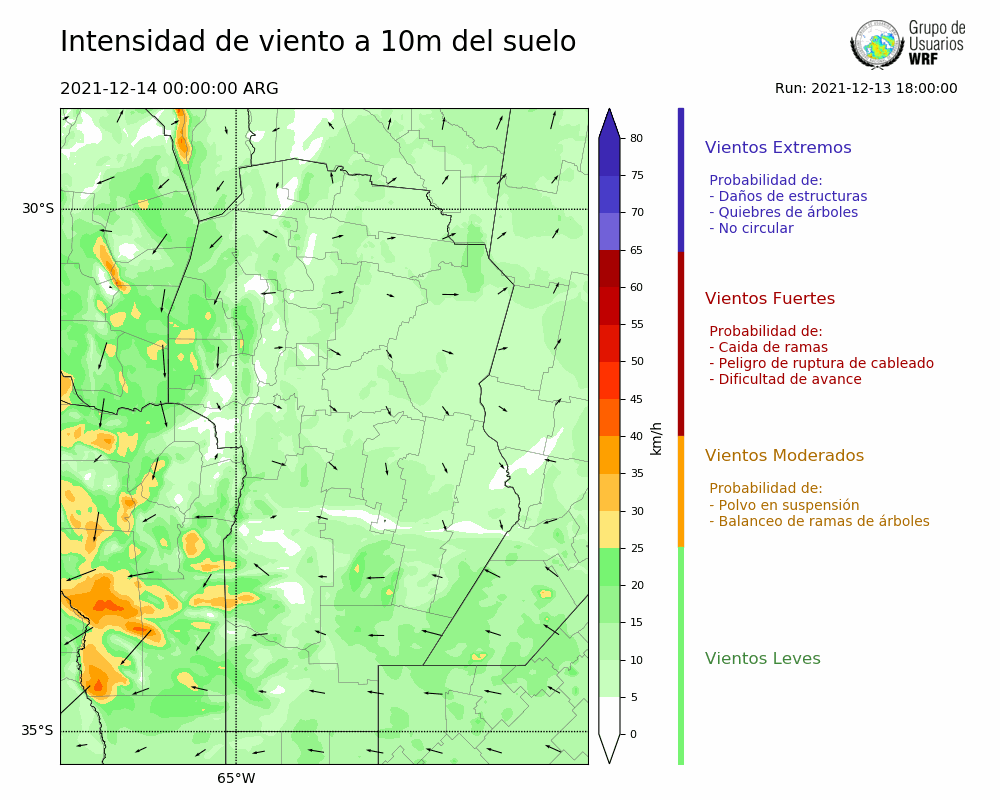 • Intensidad máxima: 15.35 km/h (14/12/2021 11hs.)