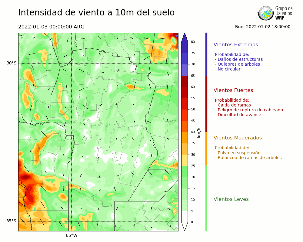 • Intensidad máxima: 14.56 km/h (03/01/2022 13hs.)