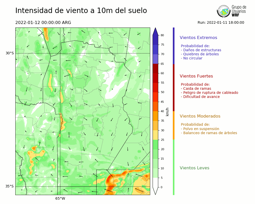 • Intensidad máxima: 18.13 km/h (12/01/2022 06hs.)