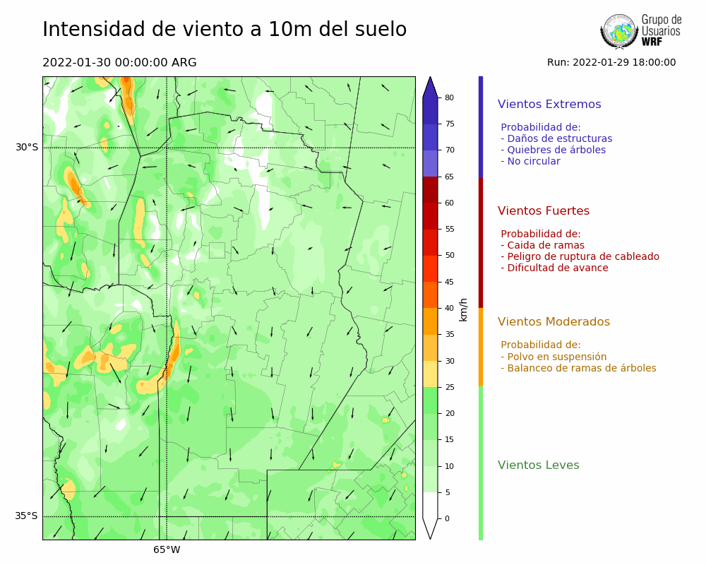 • Intensidad máxima: 18.31 km/h (30/01/2022 04hs.)