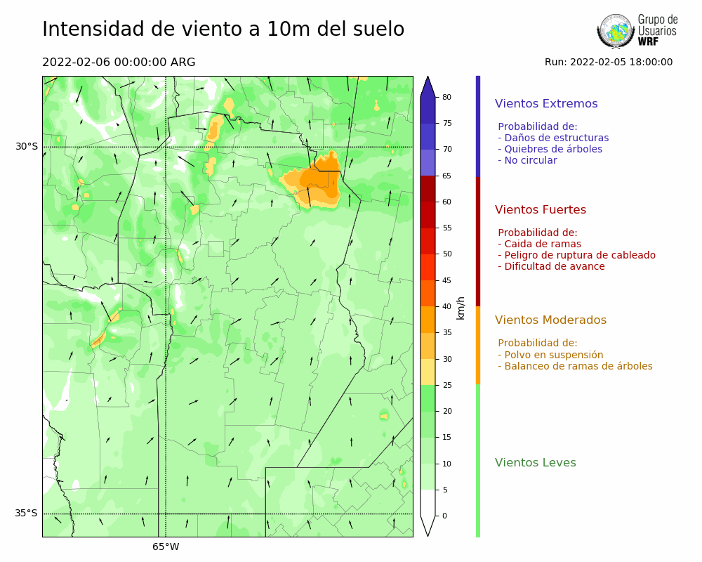 • Intensidad máxima: 13.85 km/h (06/02/2022 04hs.)