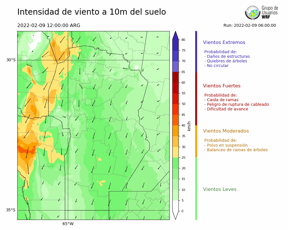 • Intensidad máxima: 25.67 km/h (10/02/2022 17hs.)