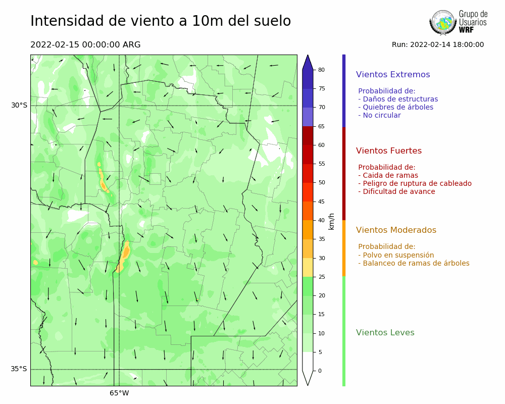 • Intensidad máxima: 26.40 km/h (15/02/2022 04hs.)