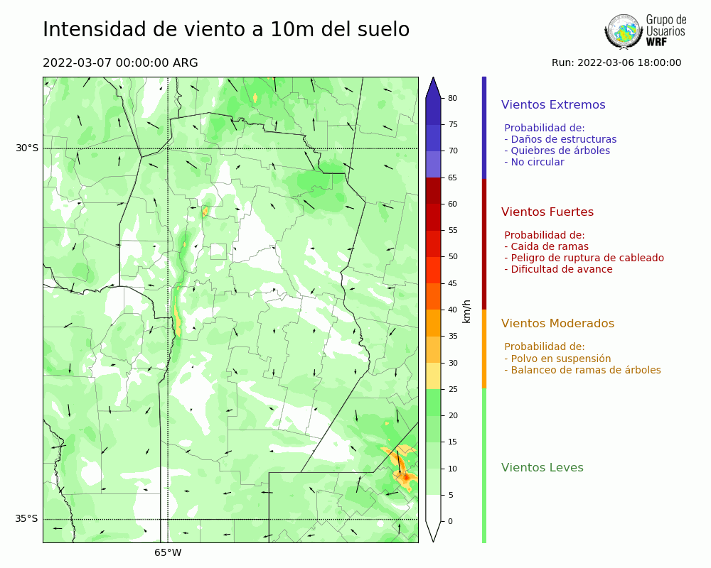 • Intensidad máxima: 10.05 km/h (07/03/2022 01hs.)