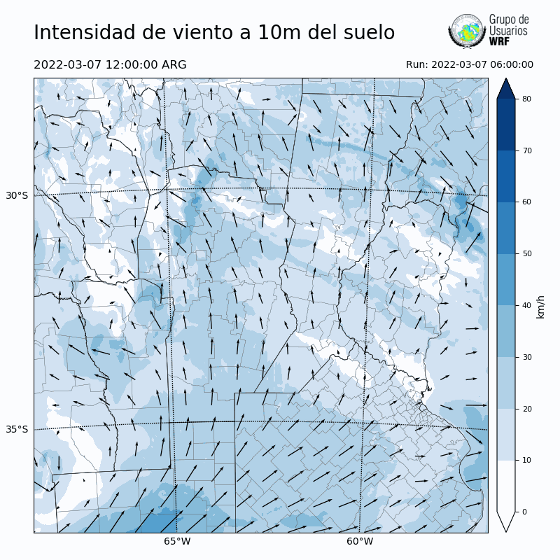 • Intensidad máxima: 8.88 km/h (07/03/2022 21hs.)