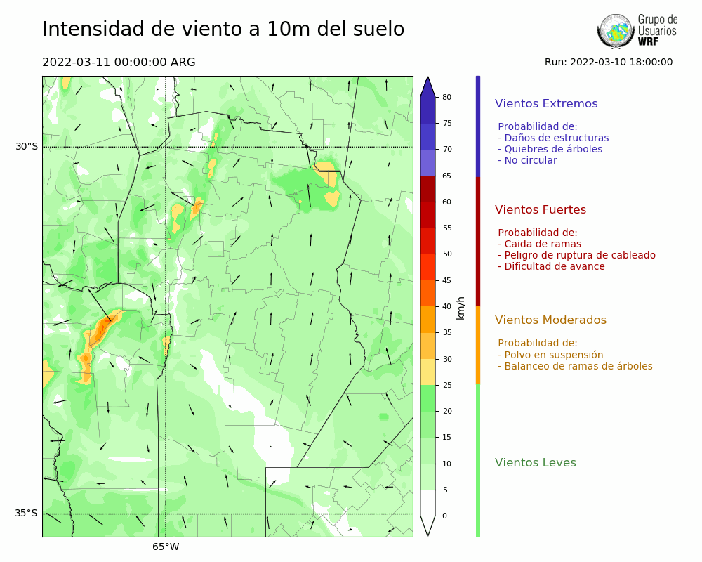 • Intensidad máxima: 12.49 km/h (11/03/2022 03hs.)