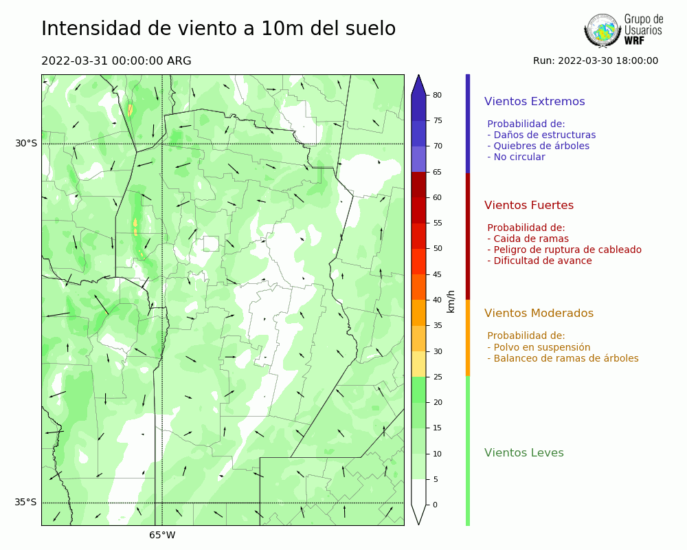 • Intensidad máxima: 14.15 km/h (31/03/2022 11hs.)