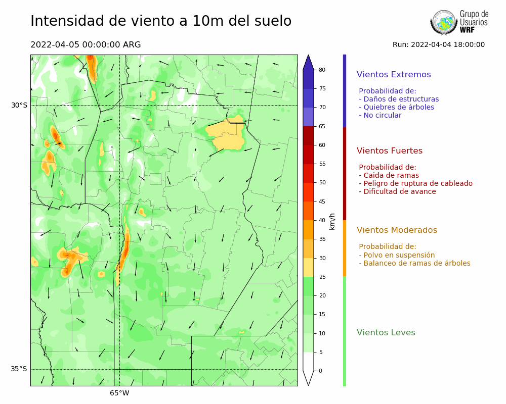 • Intensidad máxima: 26.87 km/h (05/04/2022 08hs.)