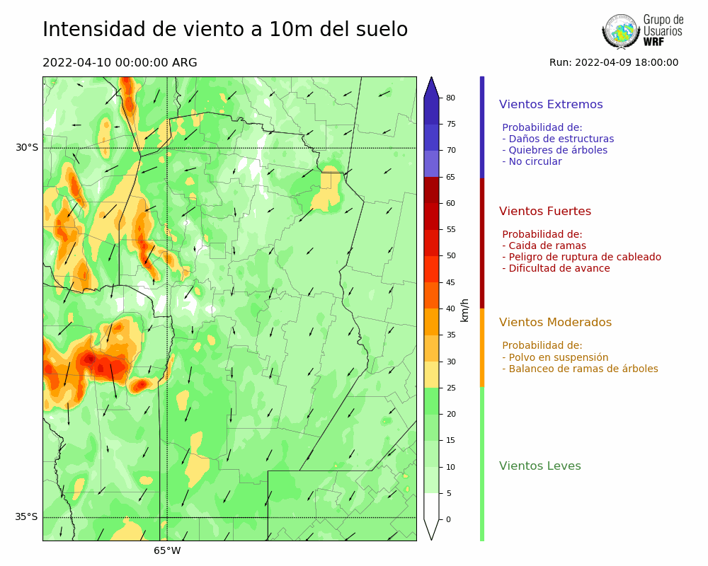 • Intensidad máxima: 21.28 km/h (10/04/2022 00hs.)