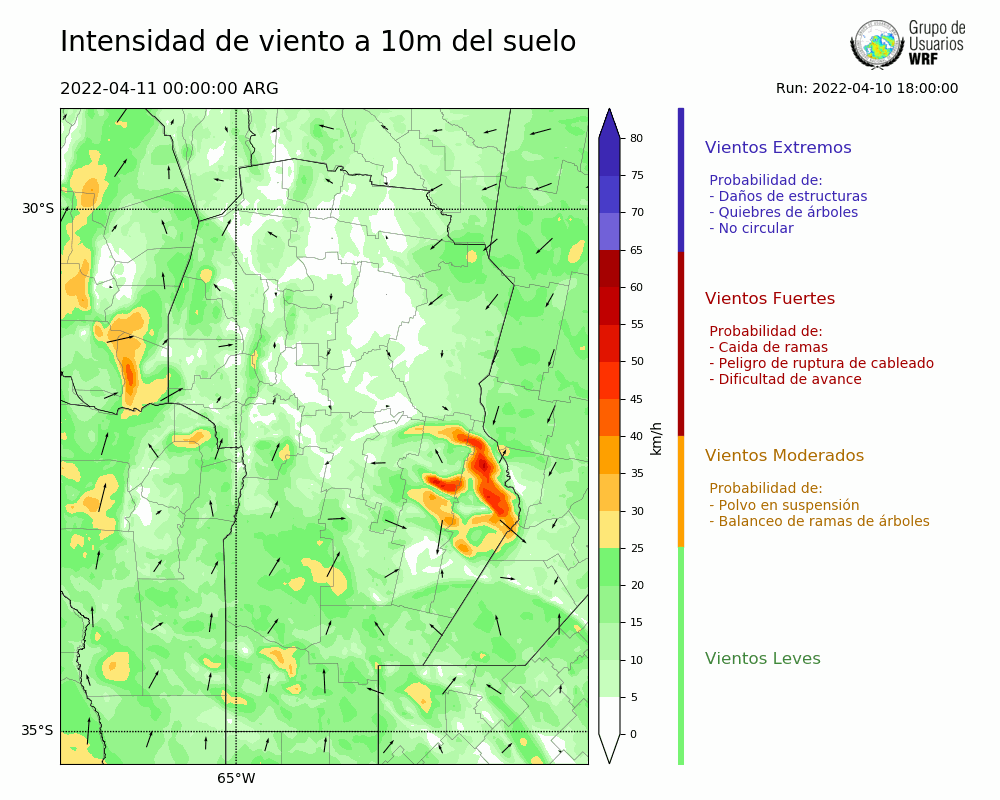 • Intensidad máxima: 24.70 km/h (11/04/2022 05hs.)