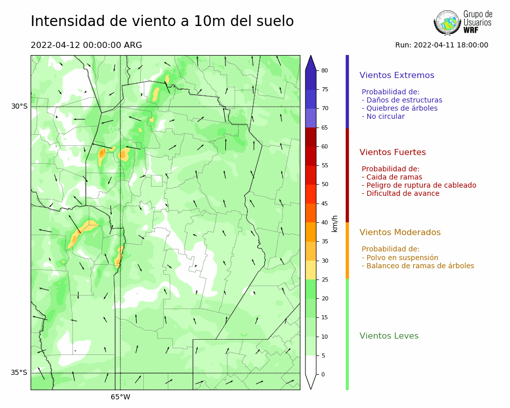 • Intensidad máxima: 18.40 km/h (12/04/2022 11hs.)