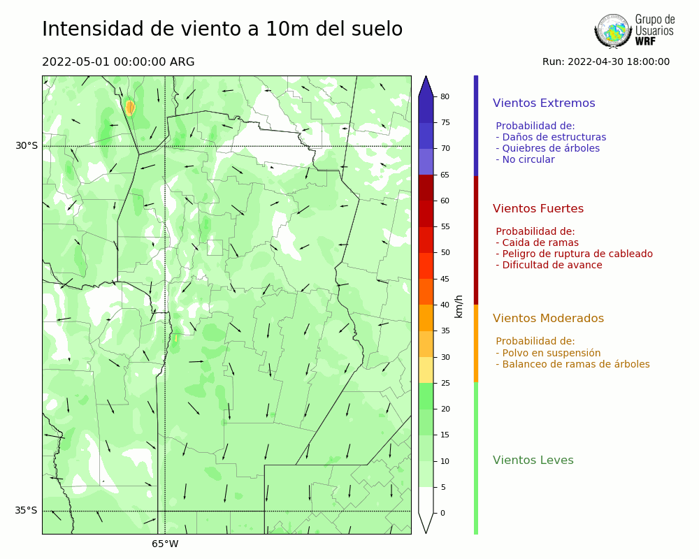 • Intensidad máxima: 13.53 km/h (03/05/2022 09hs.)