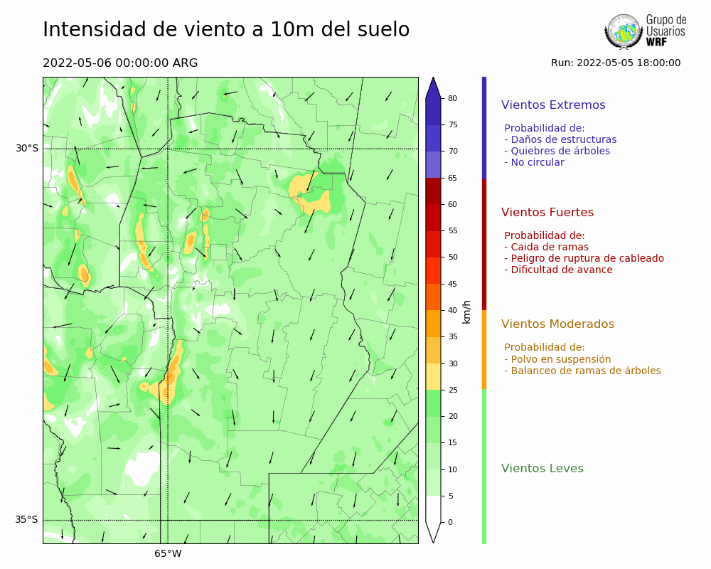 • Intensidad máxima: 5.00 km/h (06/05/2022 15hs.)