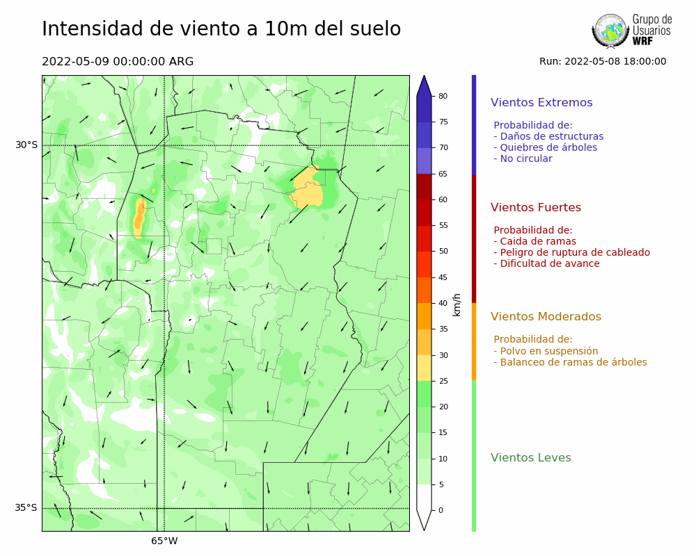 • Intensidad máxima: 18.78 km/h (09/05/2022 11hs.)