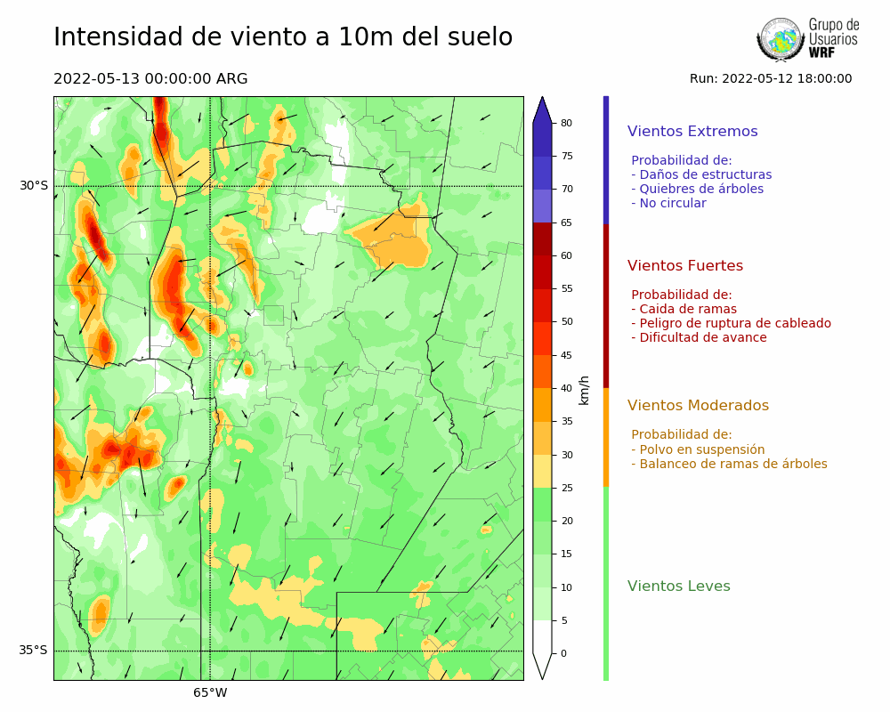 • Intensidad máxima: 27.00 km/h (13/05/2022 03hs.)