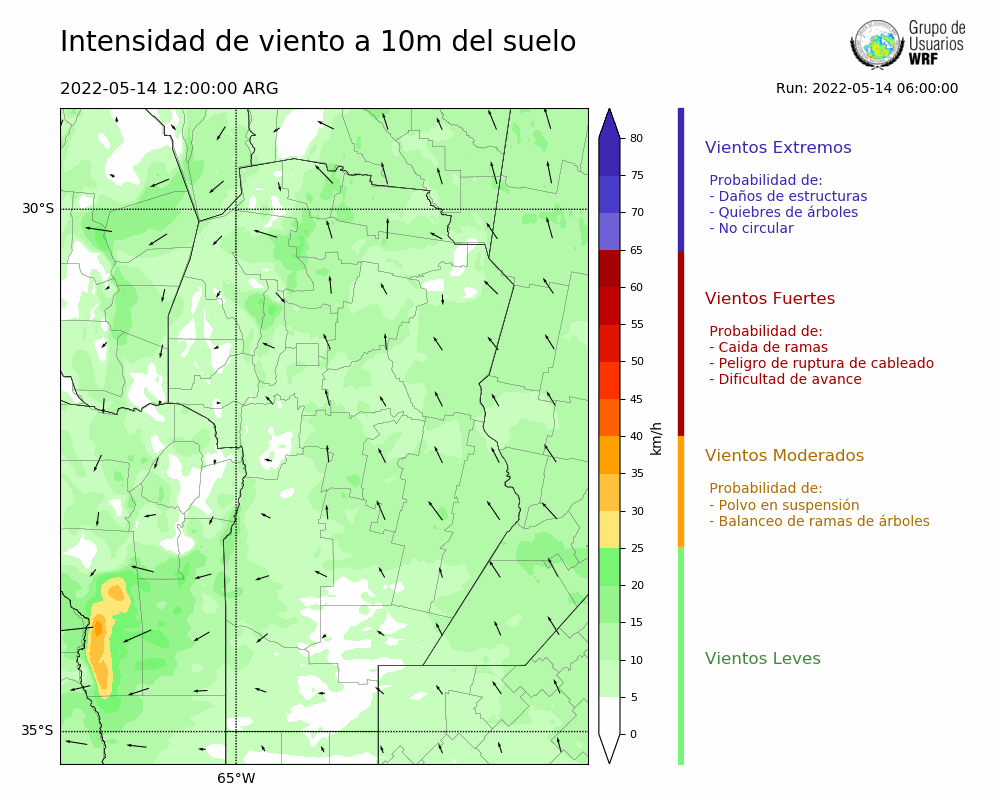 • Intensidad máxima: 12.32 km/h (14/05/2022 13hs.)