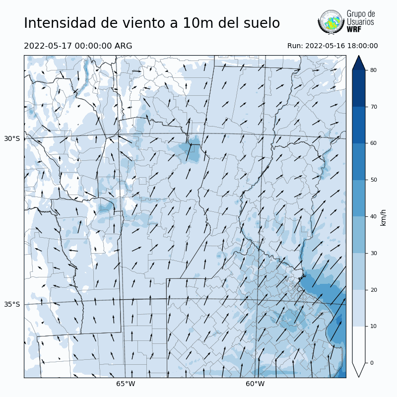 • Intensidad máxima: 17.40 km/h (19/05/2022 05hs.)