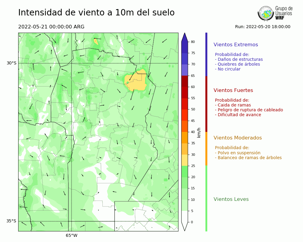 • Intensidad máxima: 17.94 km/h (22/05/2022 18hs.)