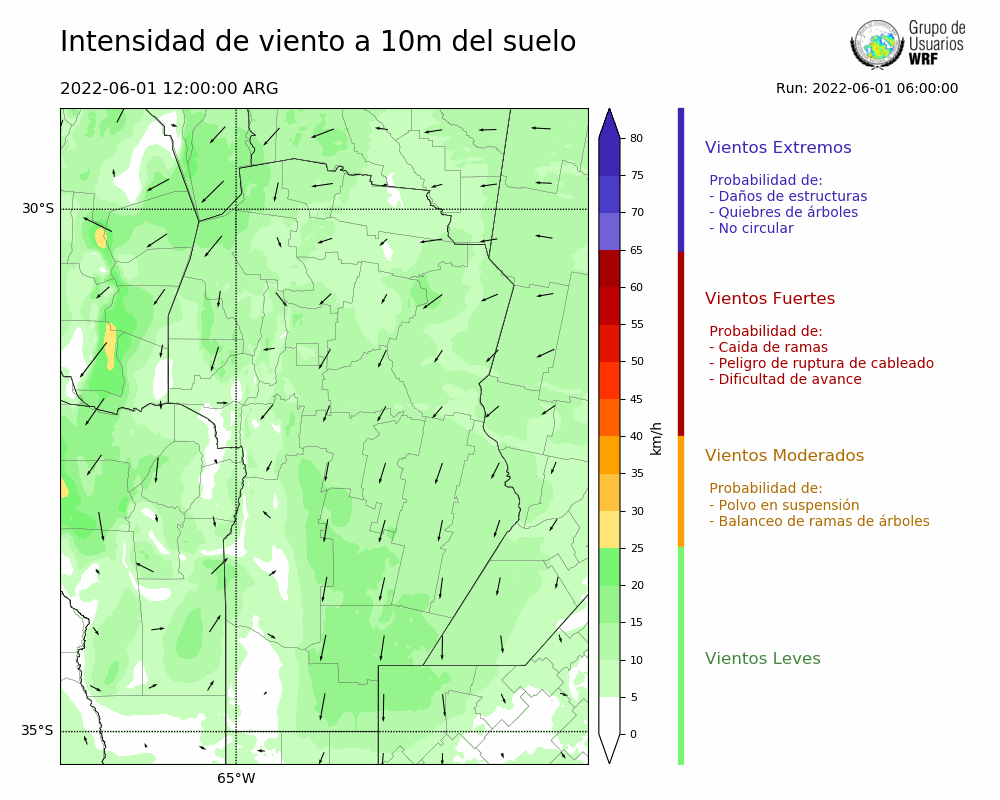 • Intensidad máxima: 17.02 km/h (01/06/2022 17hs.)