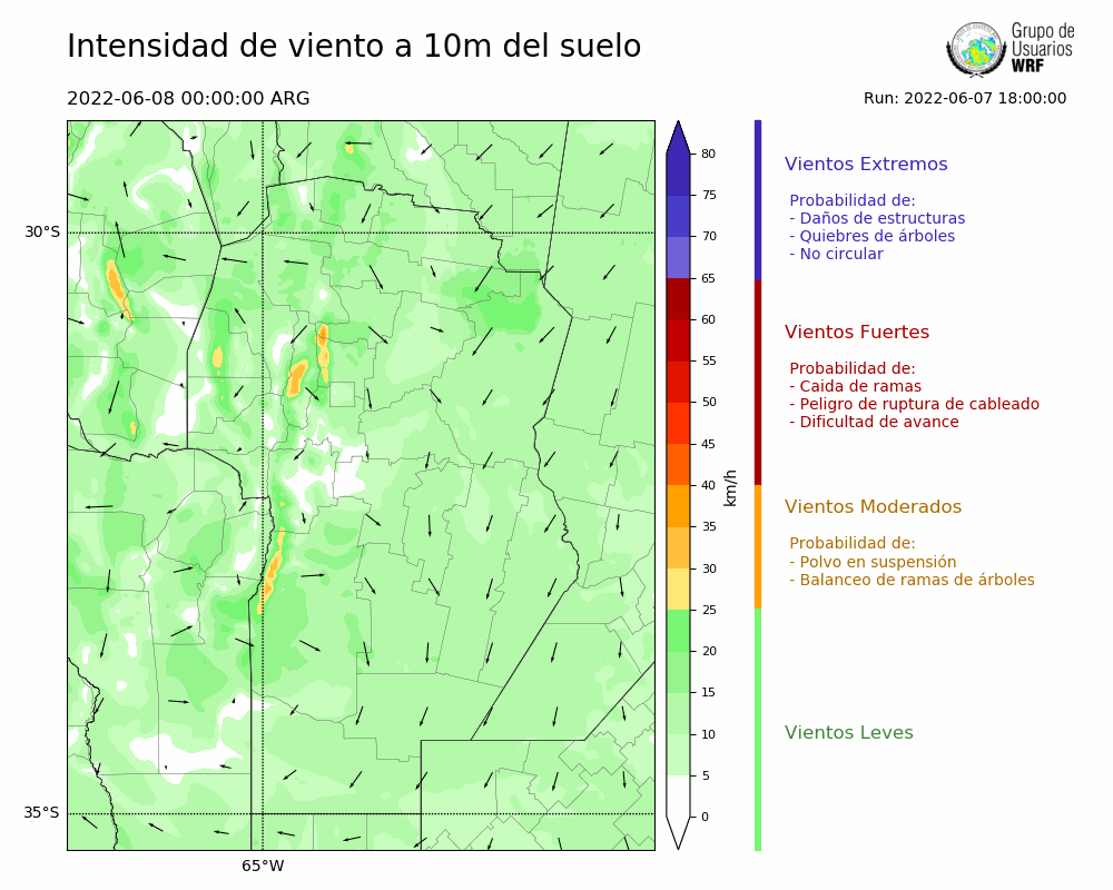 • Intensidad máxima: 30.99 km/h (08/06/2022 01hs.)