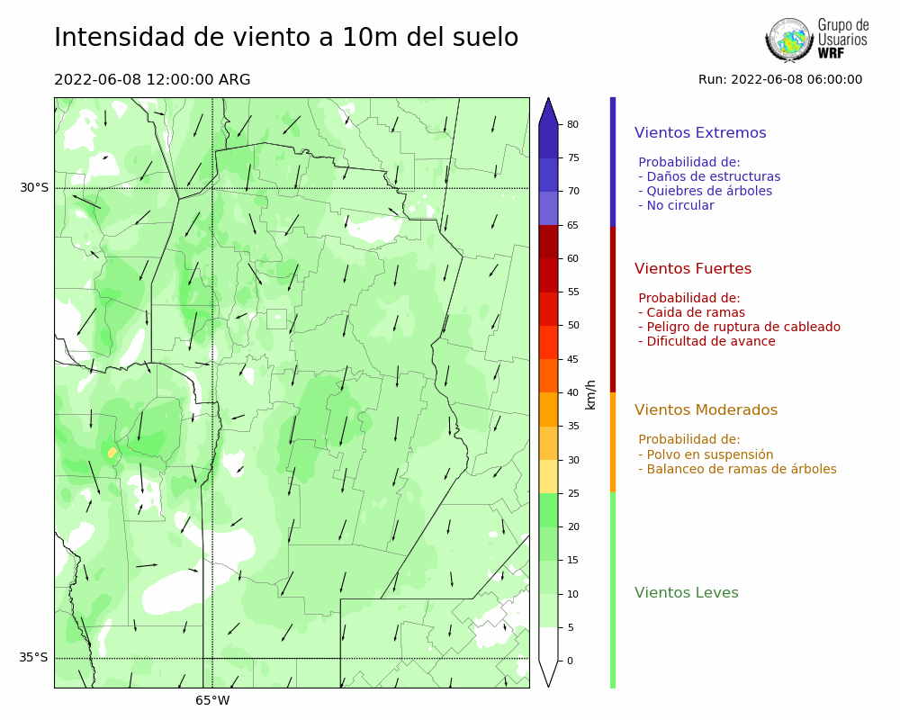 • Intensidad máxima: 17.93 km/h (08/06/2022 17hs.)