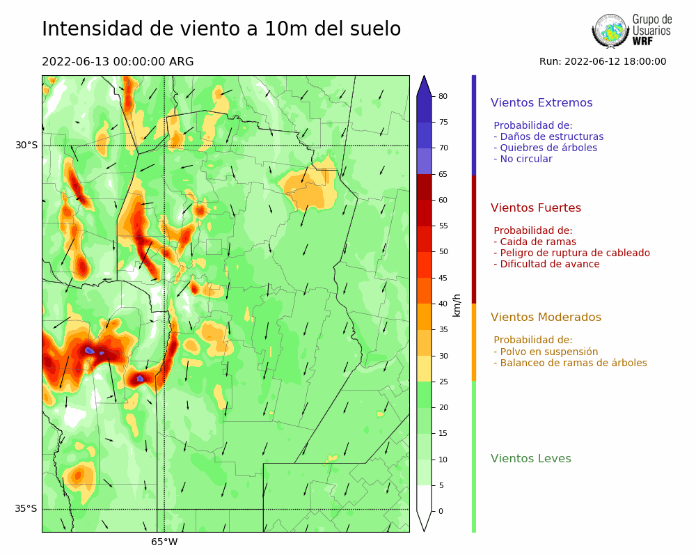 • Intensidad máxima: 34.57 km/h (13/06/2022 11hs.)