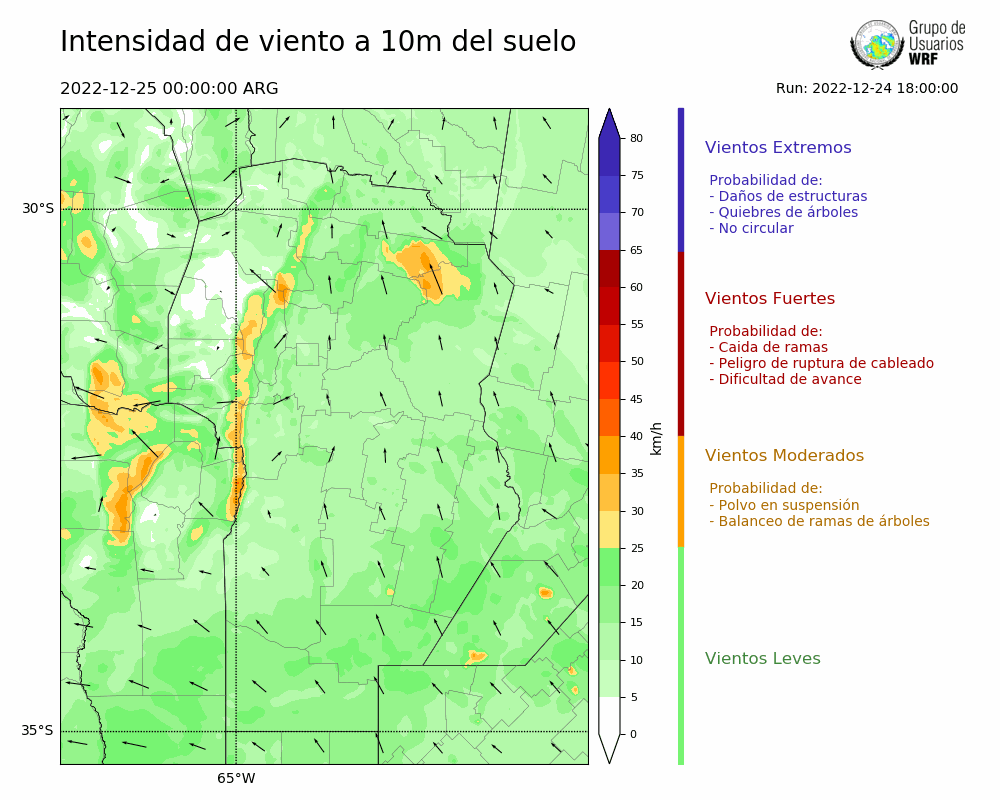 • Intensidad máxima: 19.25 km/h (25/12/2022 04hs.)