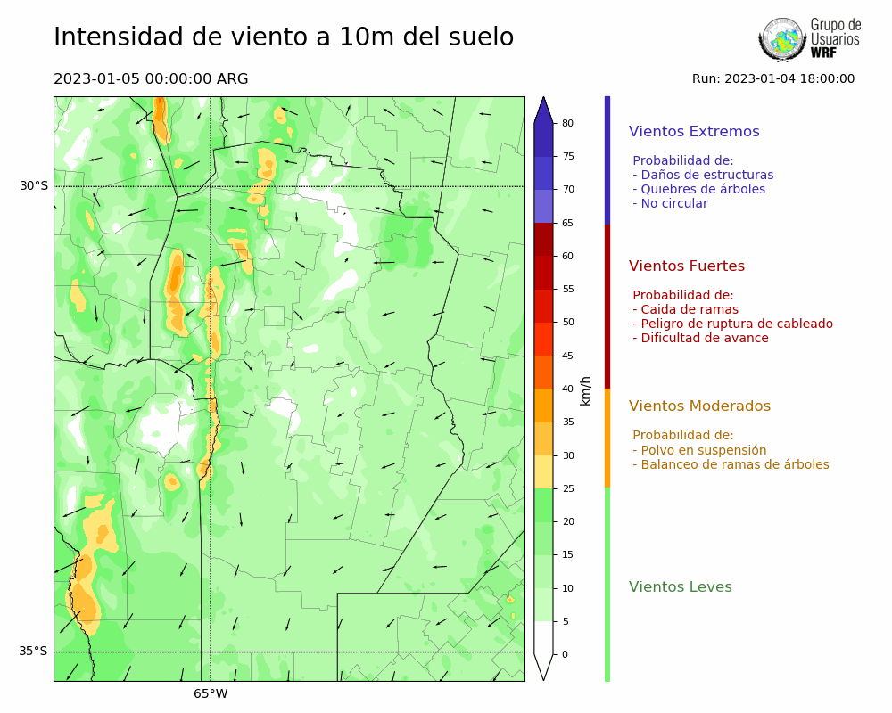 • Intensidad máxima: 18.25 km/h (05/01/2023 20hs.)