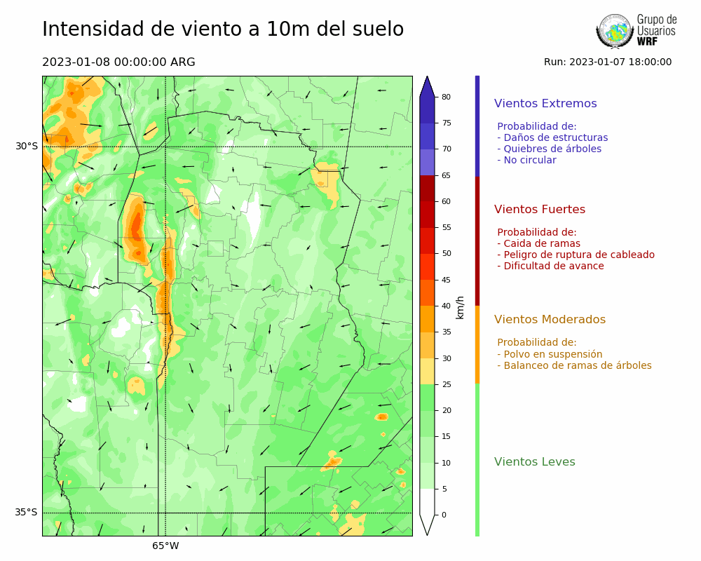 • Intensidad máxima: 20.24 km/h (08/01/2023 06hs.)