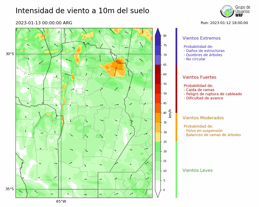 • Intensidad máxima: 18.72 km/h (13/01/2023 08hs.)