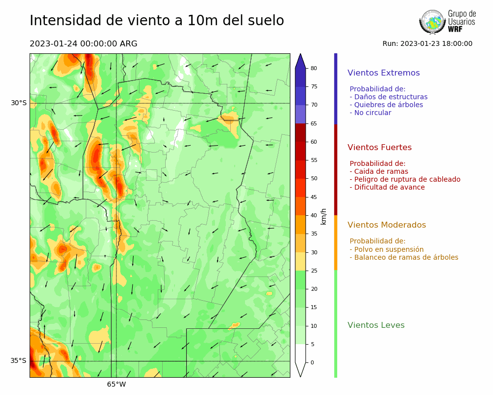 • Intensidad máxima: 25.80 km/h (24/01/2023 03hs.)