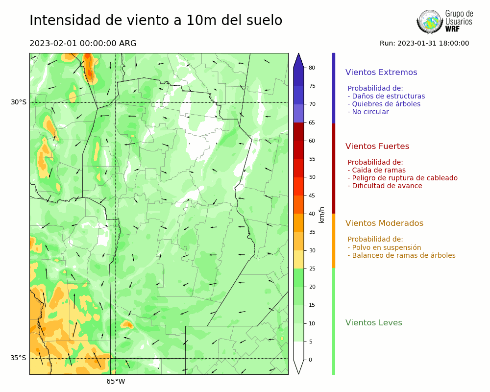• Intensidad máxima: 8.77 km/h (01/02/2023 11hs.)