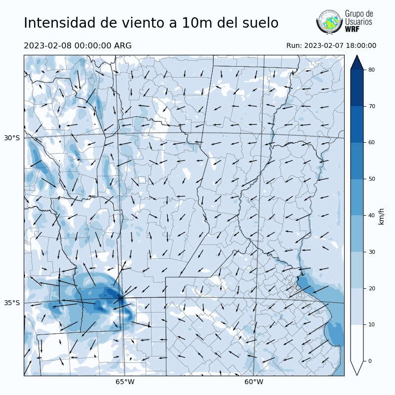 • Intensidad máxima: 26.73 km/h (08/02/2023 11hs.)