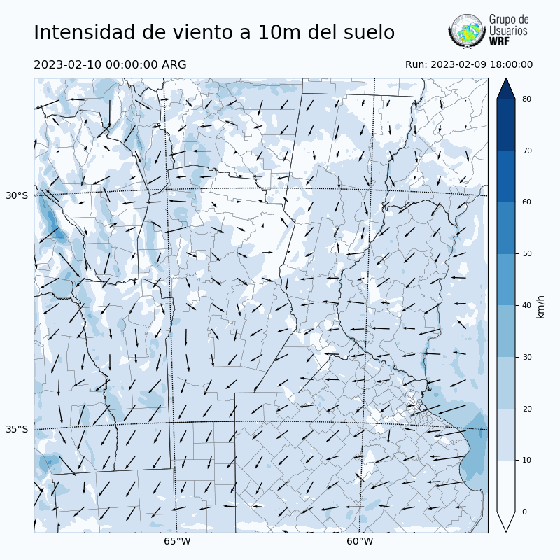 • Intensidad máxima: 9.93 km/h (10/02/2023 10hs.)