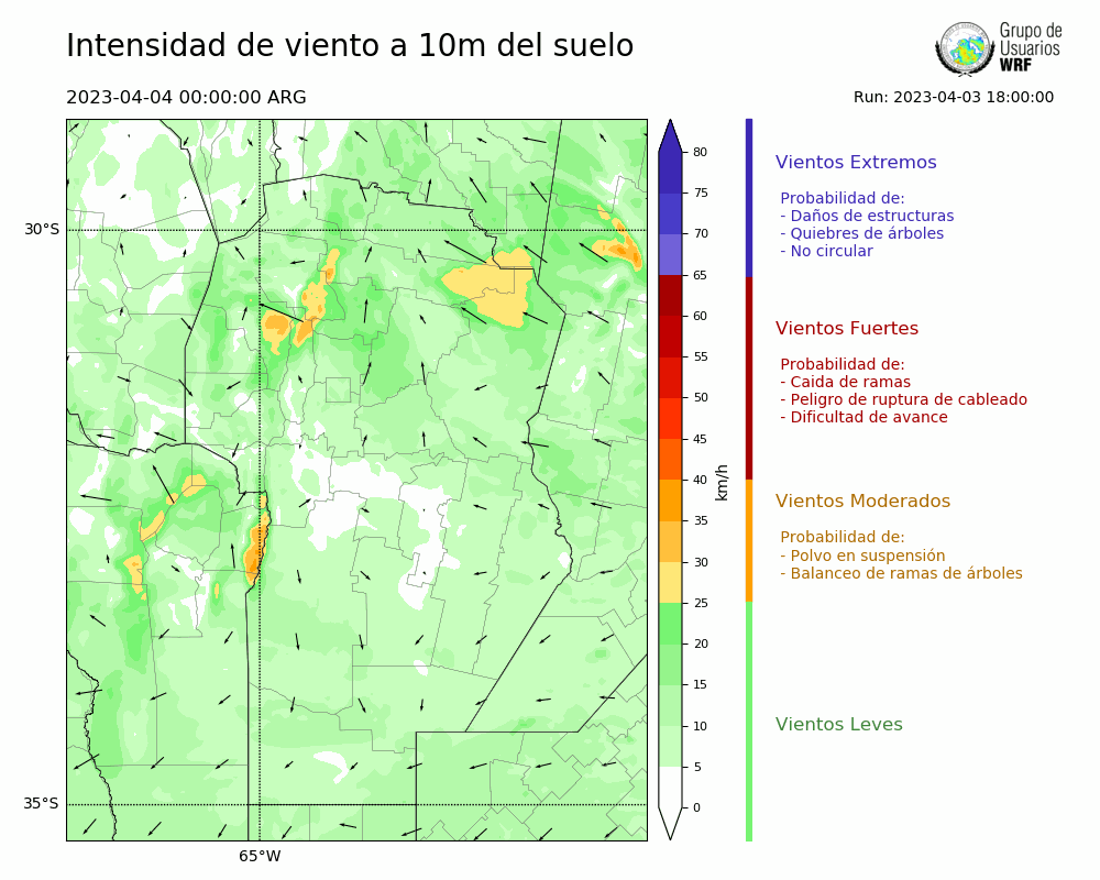 • Intensidad máxima: 10.61 km/h (04/04/2023 02hs.)
