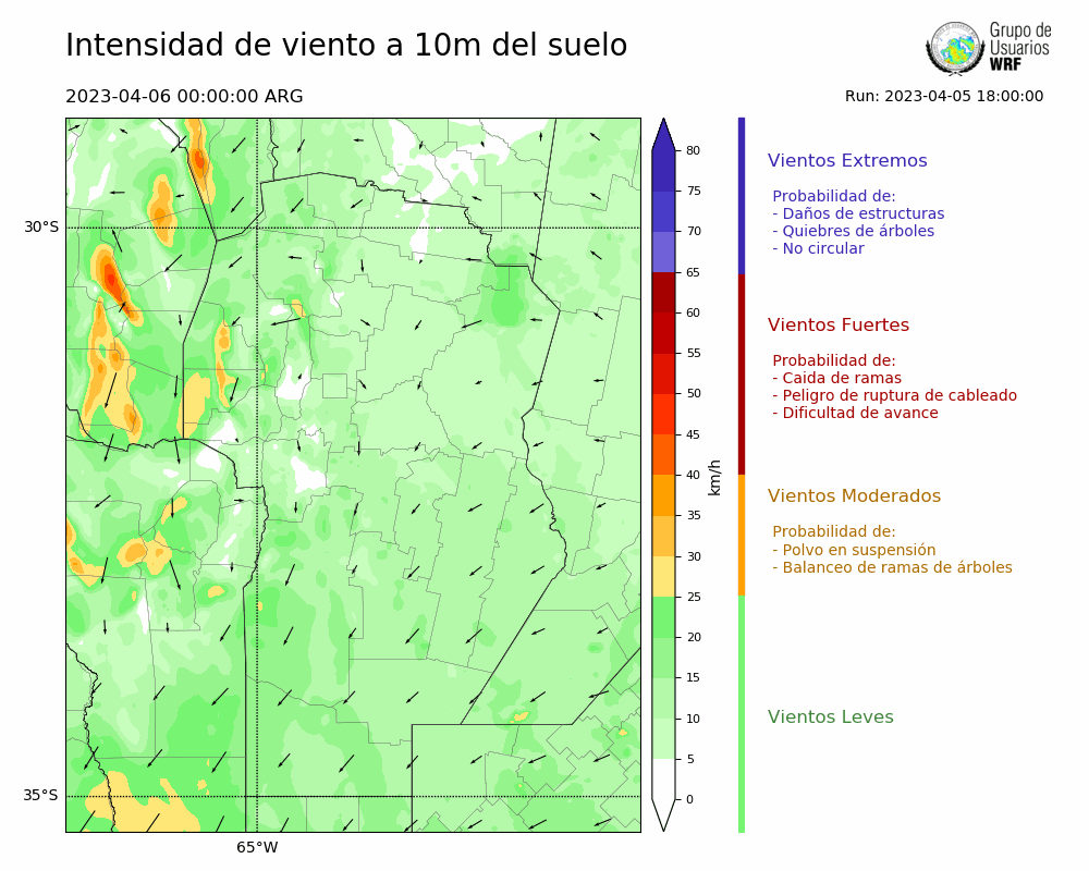 • Intensidad máxima: 9.28 km/h (06/04/2023 11hs.)