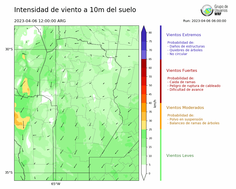 • Intensidad máxima: 15.19 km/h (06/04/2023 18hs.)
