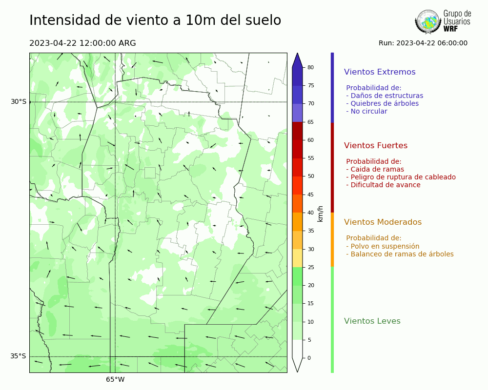 • Intensidad máxima: 11.80 km/h (22/04/2023 13hs.)
