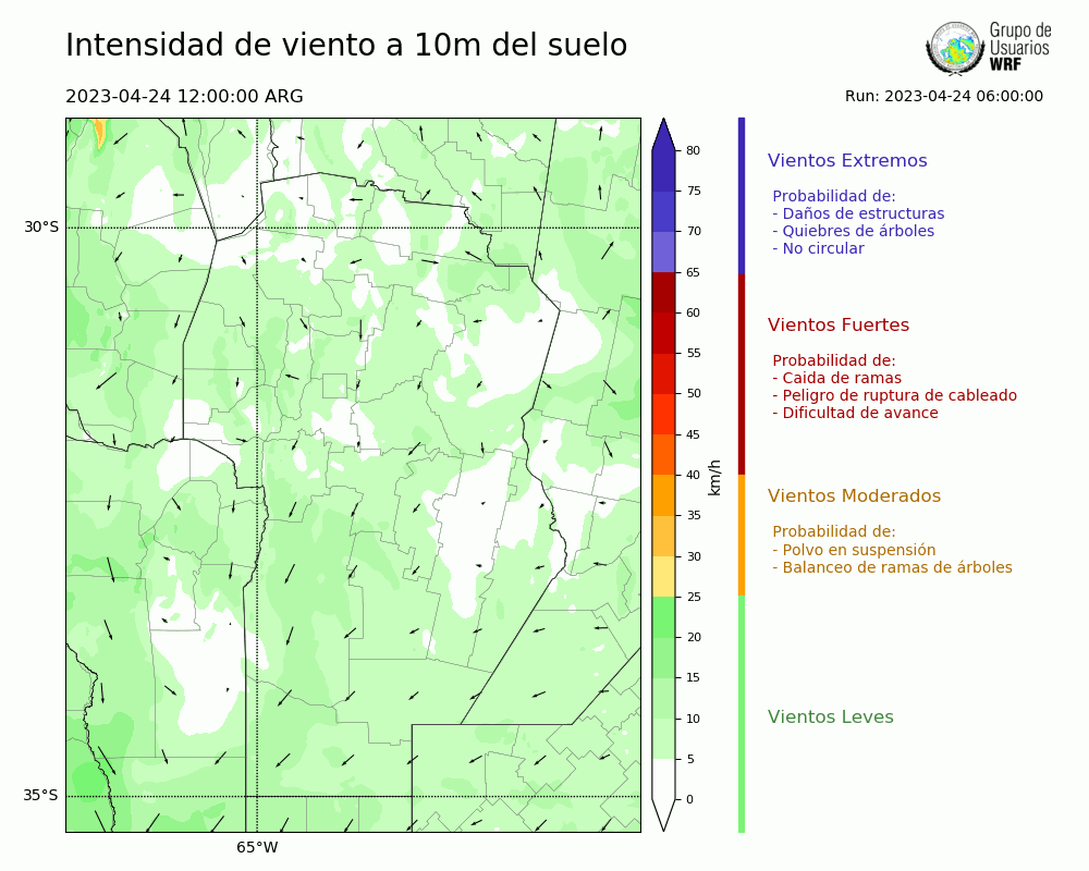 • Intensidad máxima: 16.45 km/h (24/04/2023 17hs.)