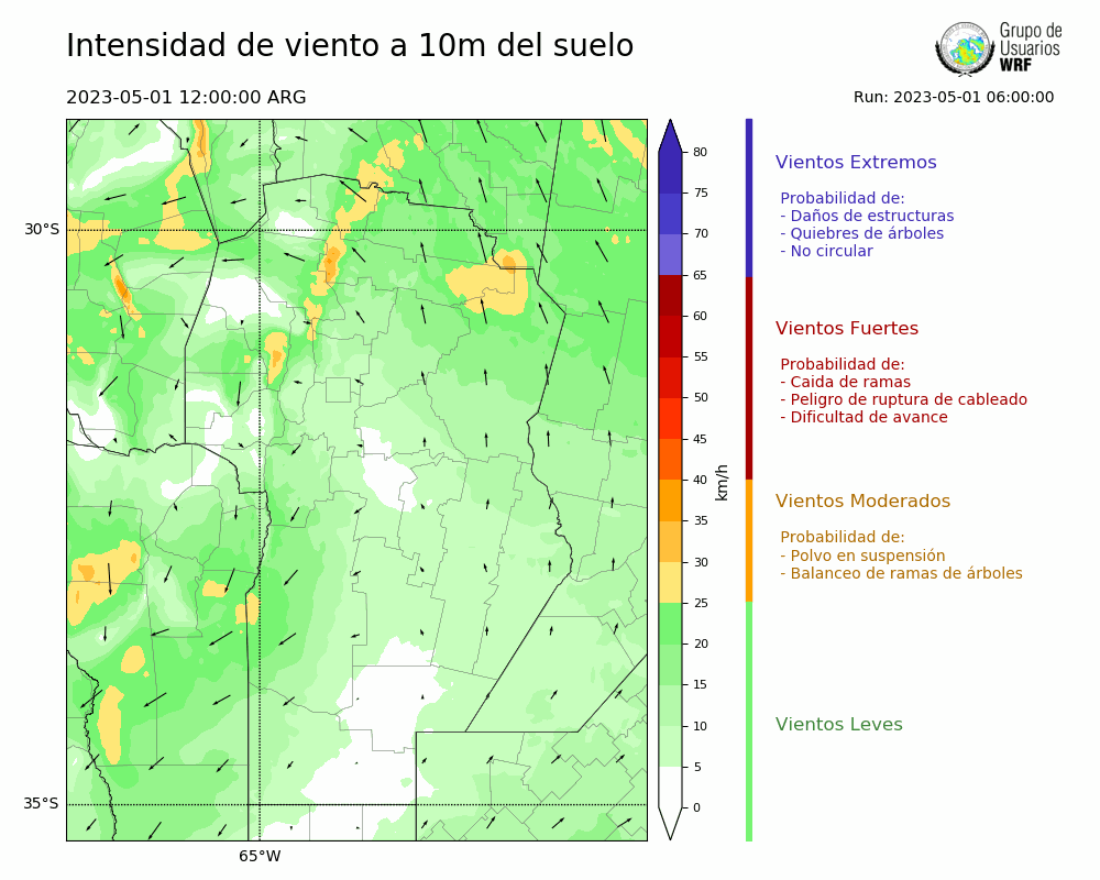 • Intensidad máxima: 7.61 km/h (03/05/2023 04hs.)