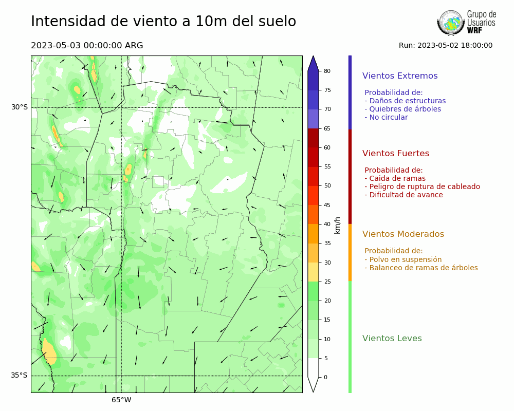 • Intensidad máxima: 4.84 km/h (04/05/2023 05hs.)