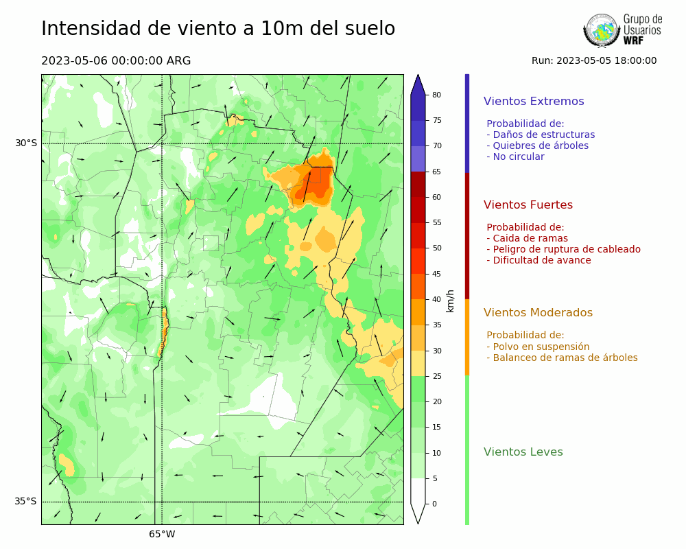 • Intensidad máxima: 16.95 km/h (06/05/2023 00hs.)