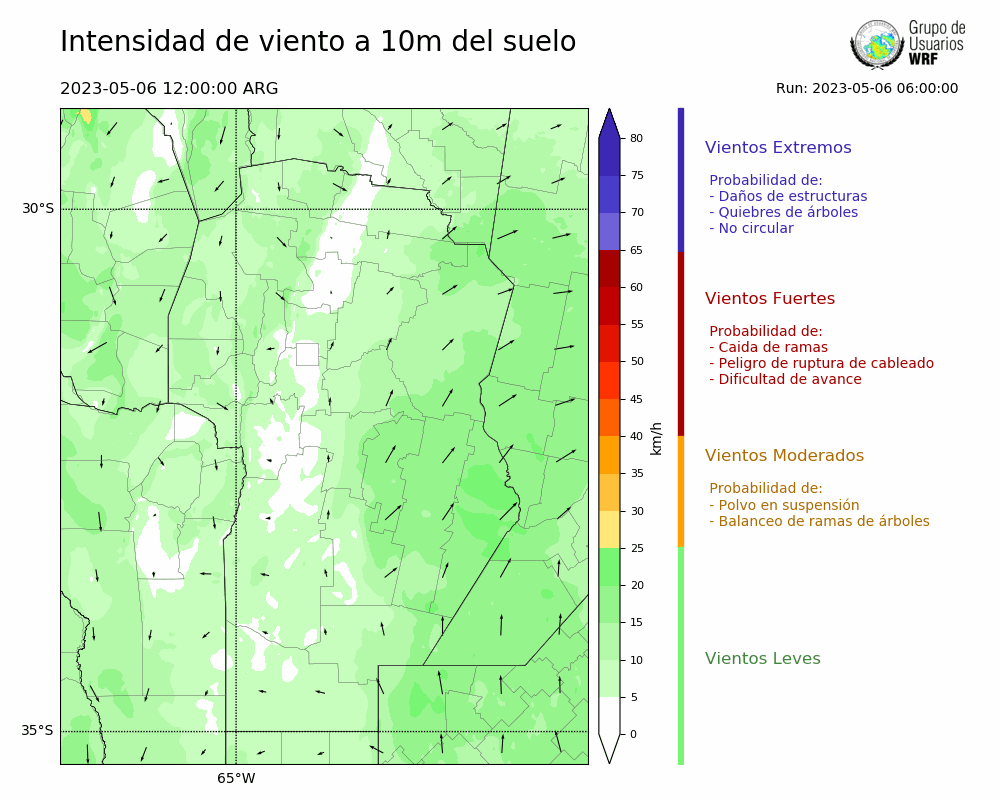 • Intensidad máxima: 7.39 km/h (08/05/2023 06hs.)