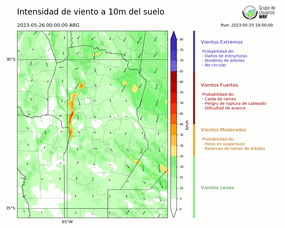 • Intensidad máxima: 6.60 km/h (26/05/2023 20hs.)