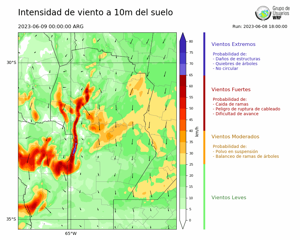 • Intensidad máxima: 10.00 km/h (09/06/2023 00hs.)