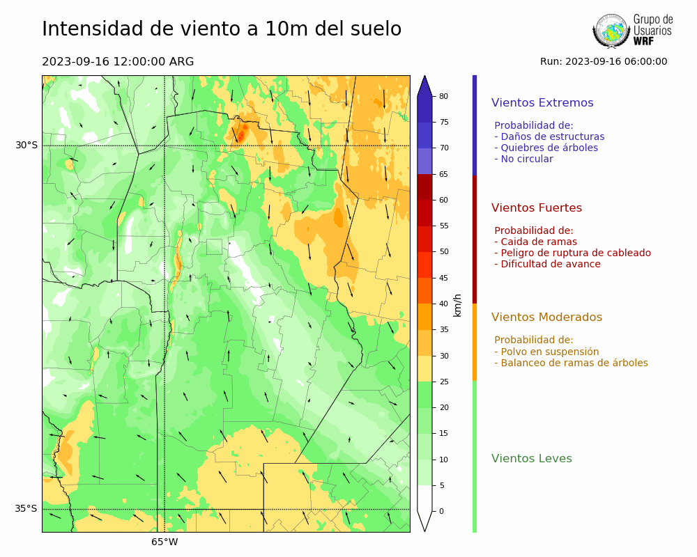 • Intensidad máxima: 16.84 km/h (16/09/2023 16hs.)