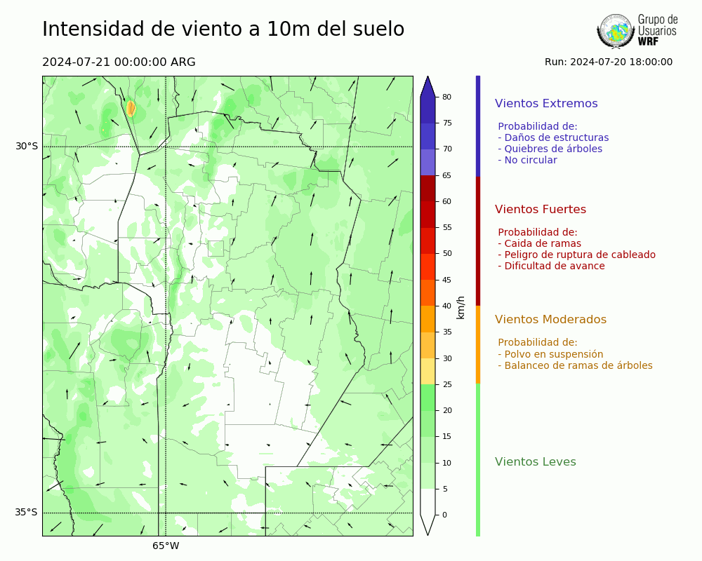 • Intensidad máxima: 11.09 km/h (21/07/2024 06hs.)