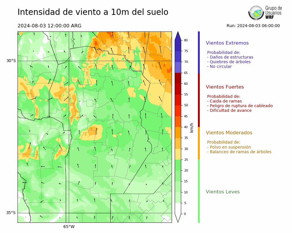 • Intensidad máxima: 22.10 km/h (05/08/2024 18hs.)